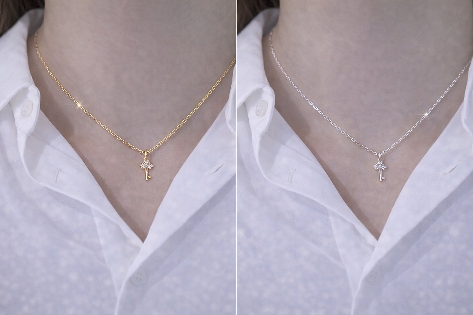 小さなkeyモチーフが、さりげなく印象を残すネックレス。
