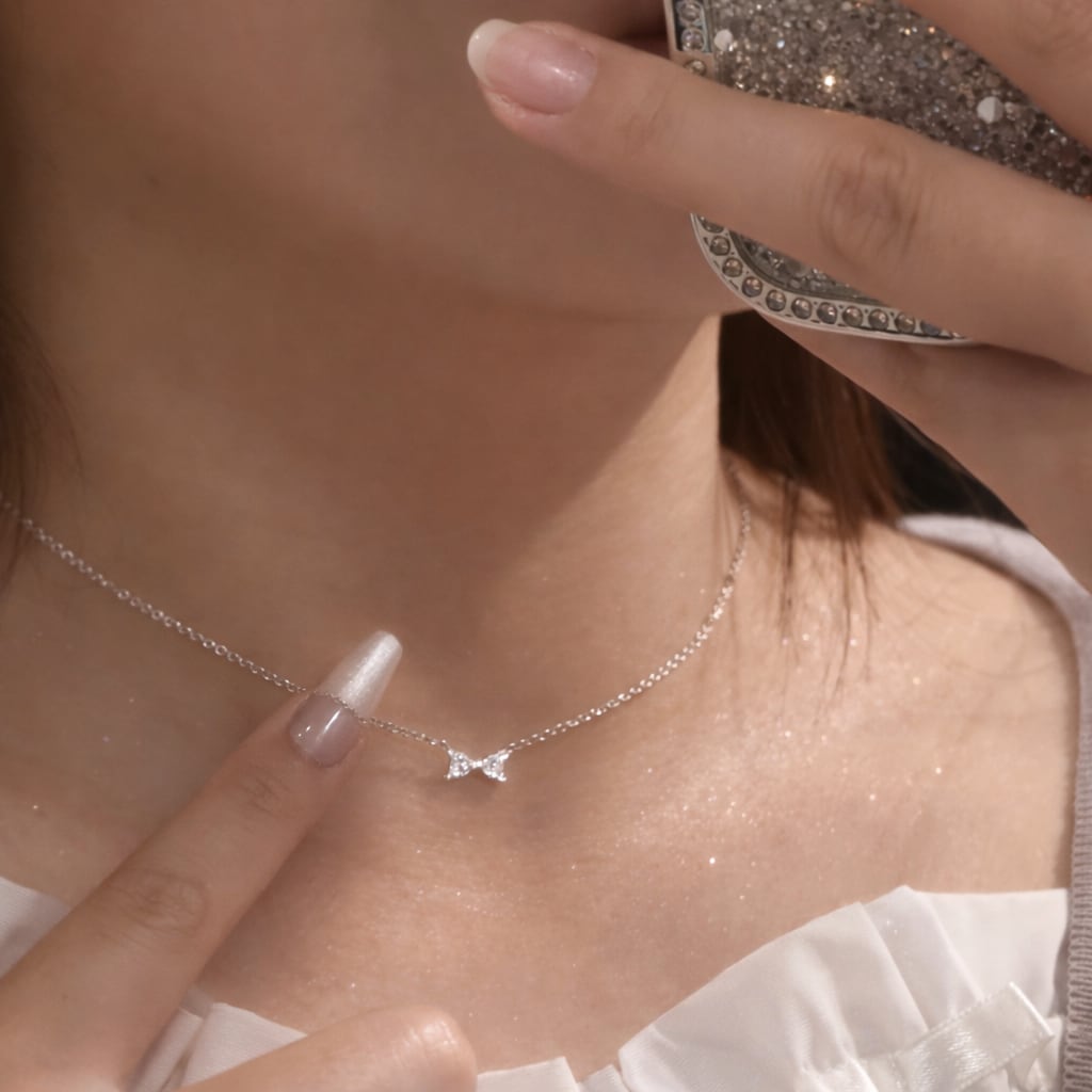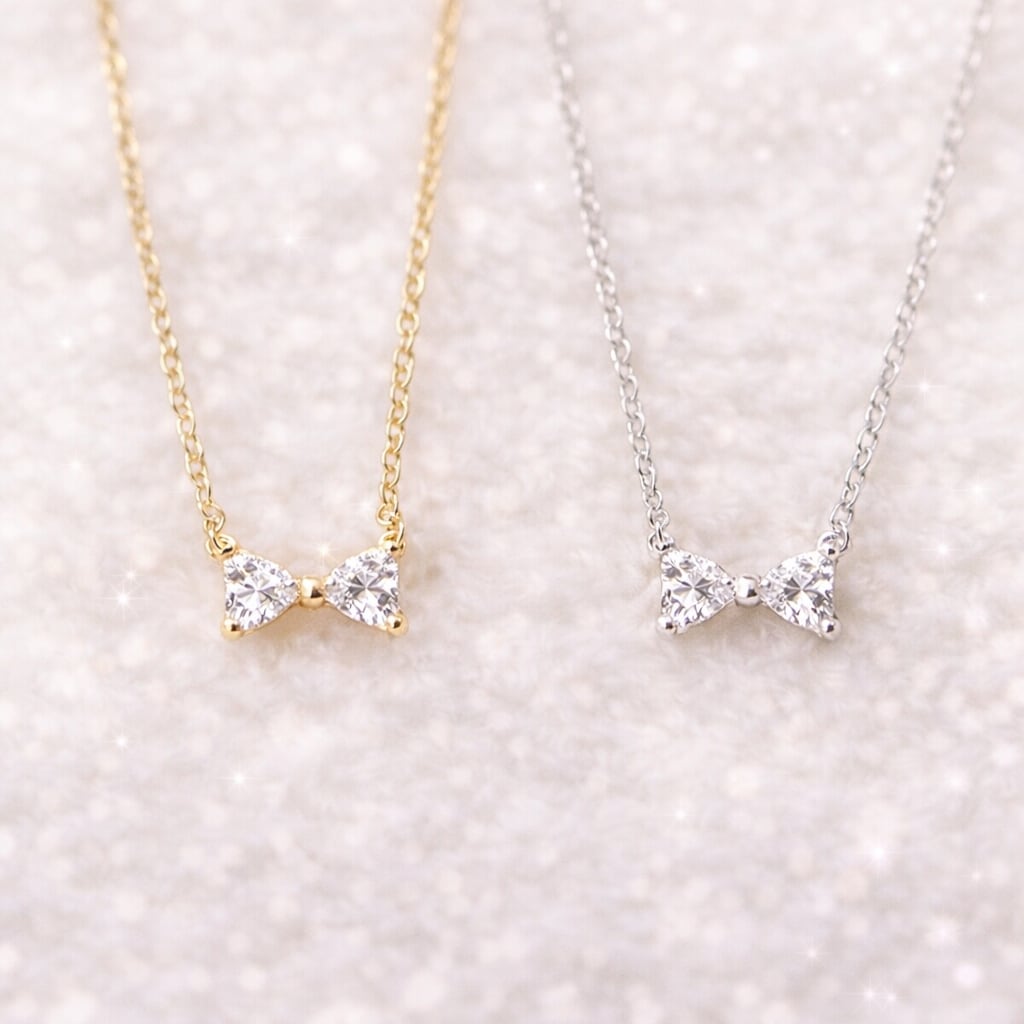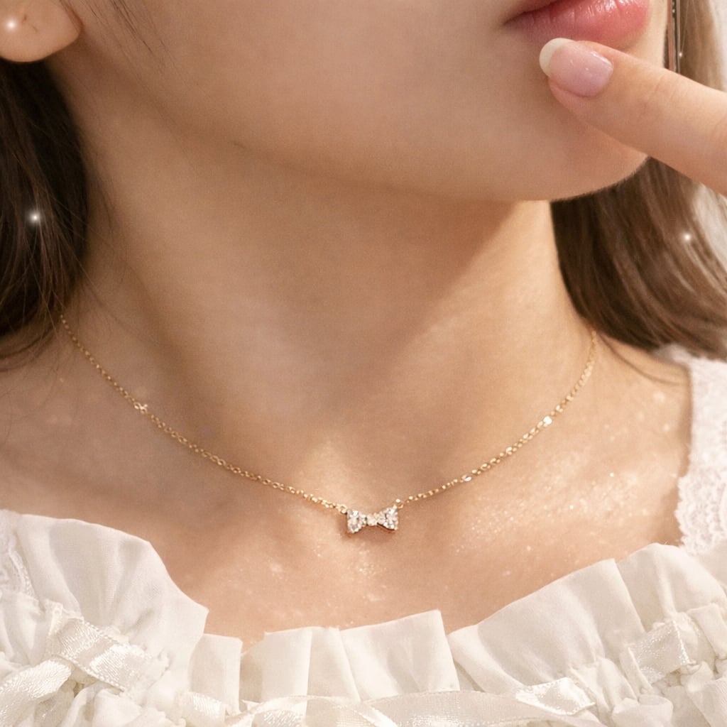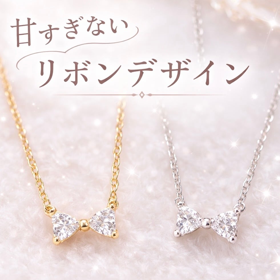 小さなリボンがさりげなく輝く、ミニリボンネックレス。